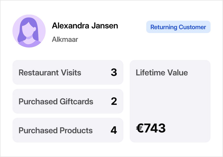 Get a full view of each guest. From giftcard use to online orders, understand your most loyal customers and what keeps them coming back.